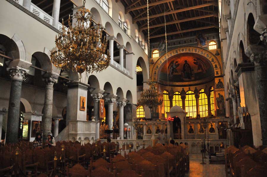 In the 10th - 13th centuries, Thessaloniki flourished economically thanks to the brisk trade of the Venetians, which was reflected, among other things, in the construction of many churches. A glorious era began for Thessaloniki, to which numerous church buildings still bear witness today, the Hagia Apostoloi, the Hagia Ekaterini, the Vlatades Monastery and the large pier that protected the harbour and part of which has been preserved to this day. You sometimes get the impression that you can actually tell the age of the building by how deeply it is founded in the current level of the ground. The finds from the Roman Via Egnatia directly on the modern Egnatia Street alone are about 5 meters below today's street level.