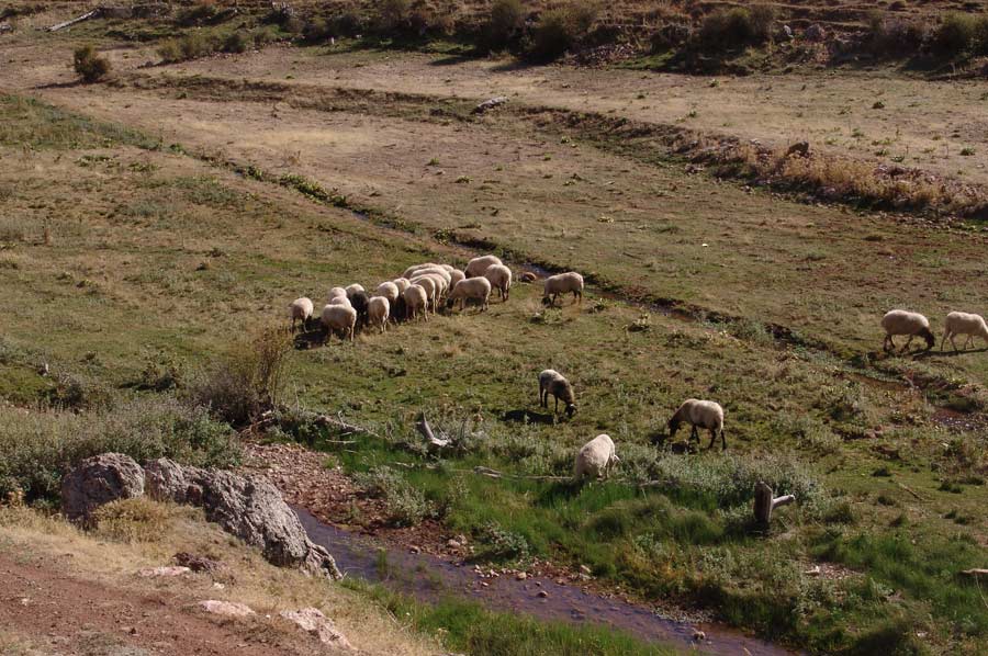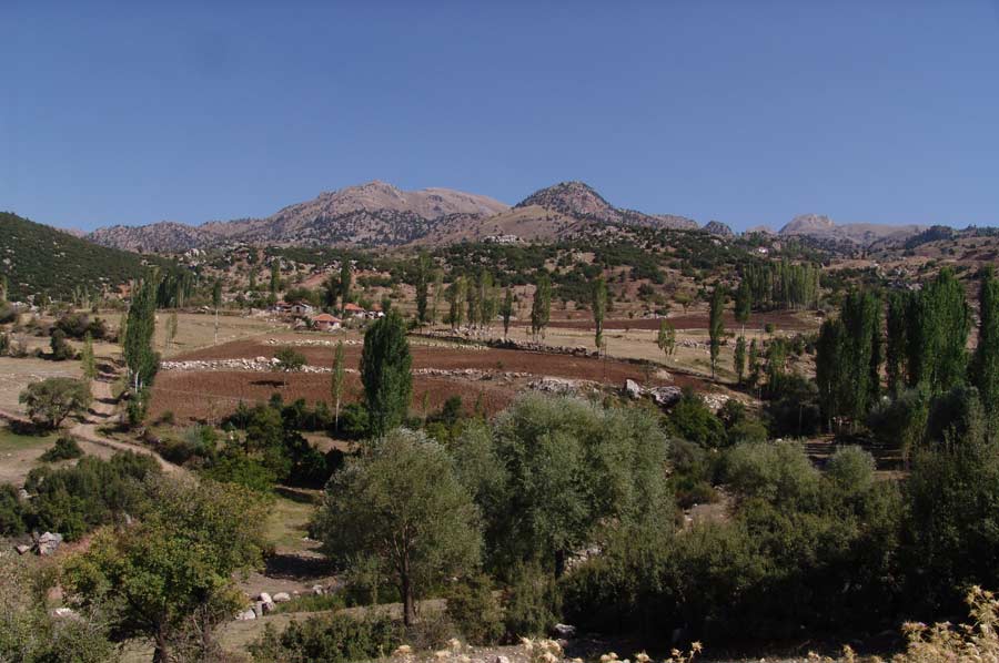 On we continued on a flat but slightly uphill prairie that is devoid of any forestry and after a short drive we turned right at Düdenköy' village in the direction of Akçay, Gömbe. The landscape is distinctly greener and the passers by are overwhelmed by vast fruit orchards. The abundance of all types of apples, pears and walnuts are a testimony to the fertile character of the land. Indeed, the village of "Elmalı" (Place of Apples) is apparently named after the fruit growing activity.