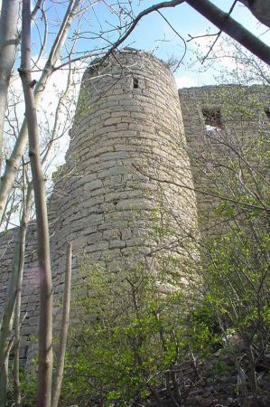 Only a few remains of ruins are preserved from the castle, including the wall of a residential building, a half-tower, small remains of the circular wall with buttresses, the stump of a round mountain fountain, and a partly excavated castle fountain. In the north and west, the castle is secured by an extreme steep slope and to the south and east by deep moats separating a forerun from the main castle.