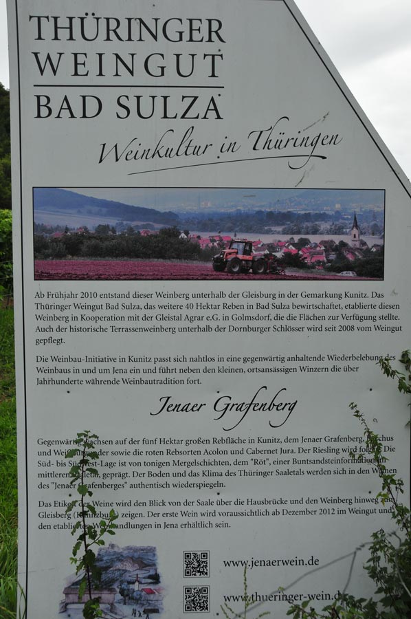 After crossing the wooden covered bridge in Kunitz, we had taken the path into the village center, then walked up the path to the Gleißberg, which first leads us along some wine fields.