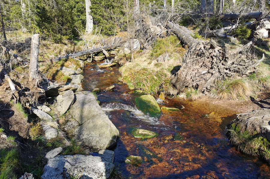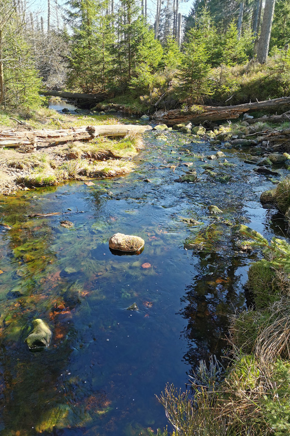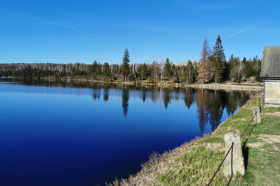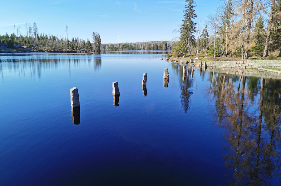 The path along the bank of the pond is a bit bumpy at first, because tree roots sometimes cross the path so extremely that it is easy to stumble. This is where the right footwear comes into play. There is a parallel gravel path (for cyclists on the Harz tours), which is less interesting. What is there to see along the way: fauna and flora around the Oderteich, the imposing dam wall at the end of the circular route, spruce forest with some of the oldest spruce trees in the Harz National Park (300 years), high moor areas, forest development into mixed forest, the tributary of the Oder to the reservoir. And of course, a stamp, here the number 217. Incidentally, other hiking routes cross here, also in the direction of Torfhaus and Oderbrück or alternatively in the direction of Altenau and Wolfswarte. An idyllic place for a short stopover.