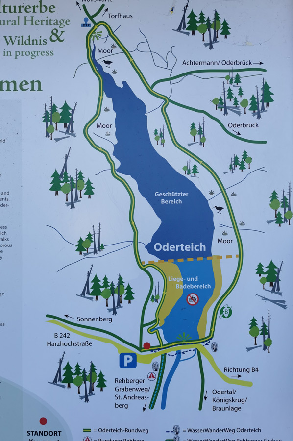 We were on our way back from Braunlage to Clausthal-Zellerfeld in the early afternoon when the wonderful sunshine, despite the forecast for rain, forced us to stop at the Oderteich car park.