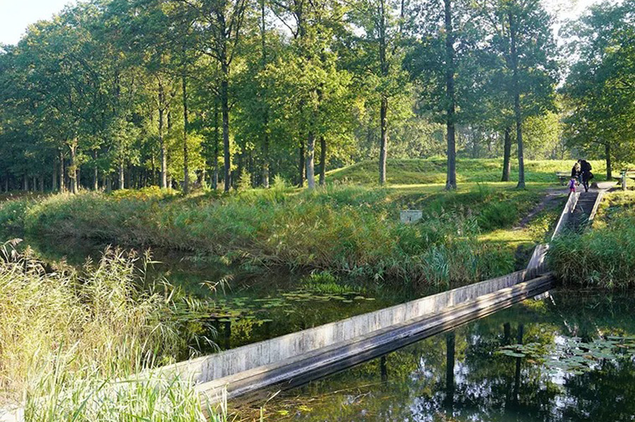 In the park-like setting of the West-Brabantse Waterlinie is an incredible 'sunken' bridge that offers visitors what is arguably a unique opportunity to reach a 17th-century Dutch fort seemingly by walking across the water. In the 17th century a number of forts and moats were built along the West Branbant waterline (we recently reported on Schenkenschanz Fort). Fort De Roovere is also an earth fort built as part of the Dutch Water Line, a series of water-based defences designed by Maurice of Nassau in 1628 during the Eighty Years' War to defend against Spanish invaders. Fort de Roovere was surrounded by a shallow moat, too deep to march through but too shallow for boats to swim on.