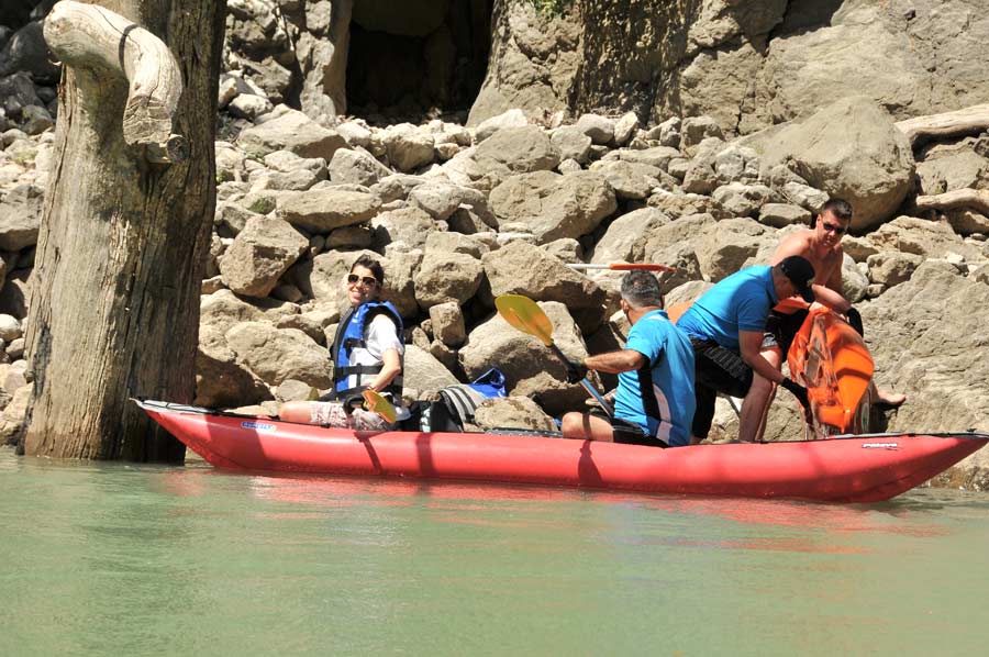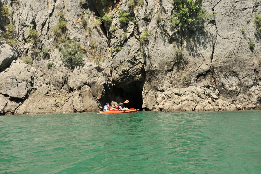 A ferry and excursion service has also been set up on the reservoir for tourists from the hotel complexes on the beach, which takes you on a tour of the reservoir and into one of the canyons with a final meal in a restaurant on the lake. During our paddling tour in the canyon, however, these excursion boats were not very disruptive; the reservoir foothills are simply too large.