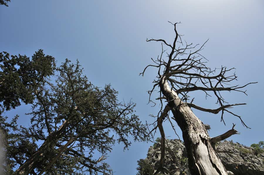 If one can speak of a dam project as “natural,” then this choice of words was entirely accurate, at least when it came to the surrounding nature. Despite a number of dead trees that jutted far out of the water, creating a sometimes-spooky atmosphere, the banks were mostly green and covered in dense pine forest; in some places we could even make out a few cedars of Lebanon.