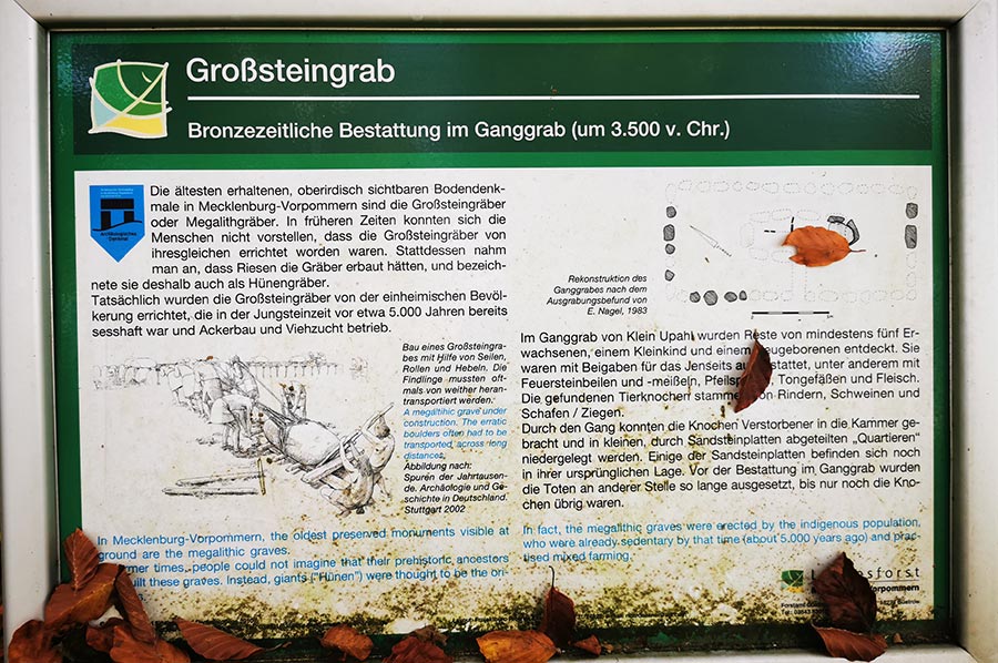 The people living in Mecklenburg-Western Pomerania during the Neolithic period built mighty grave monuments for the deceased members of their families, as in many parts of northern Germany and as far as England.