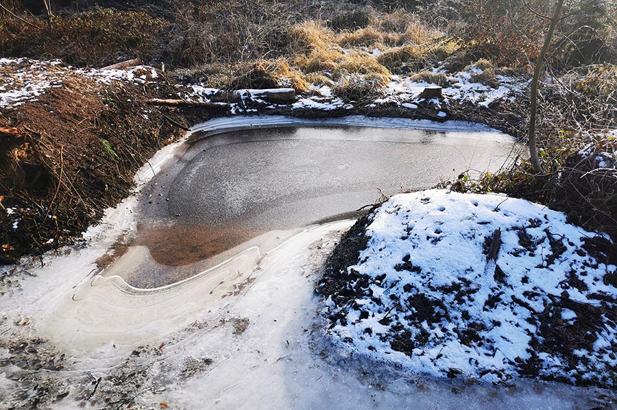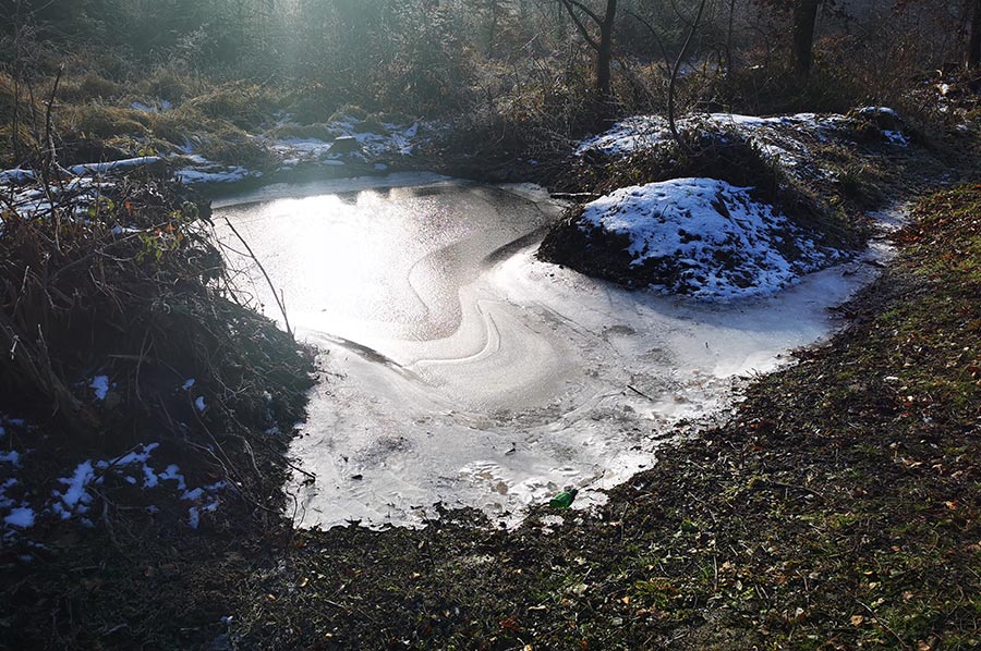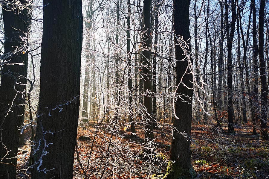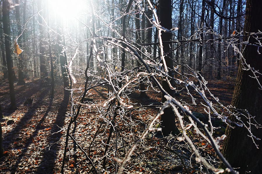We had discussed the topic of hoarfrost sufficiently, enjoyed the forest with its frozen leaves and the associated noises while hiking, and set off on the way back past the remains of the old railway viaduct, especially as the cold in the shade was noticeably increasing. A wonderful day in nature that we hope will stay with us for a long time to come.