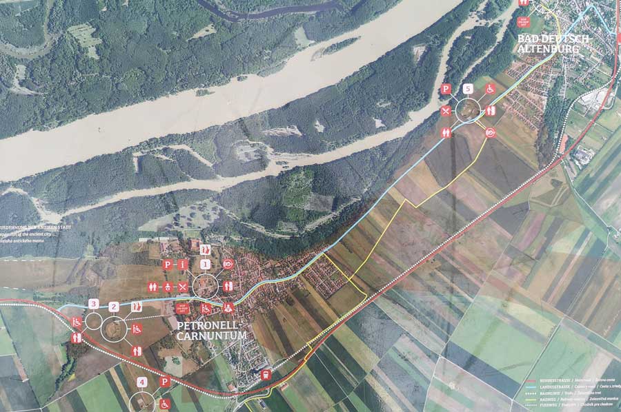Next to the Roman military camp of Carnuntum, which was located directly on the banks of the Danube on the Pannonian Limes, the civilian city of Carnuntum developed in quick steps in addition to the military camp until it became the administrative centre of the Roman province of Pannonia at the beginning of the 2nd century AD.