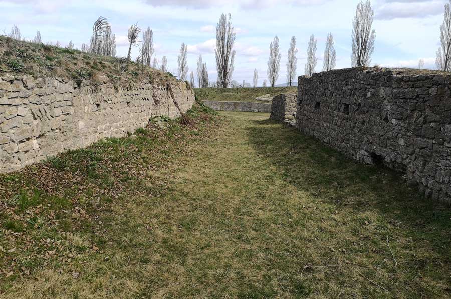 Like almost every larger Roman city, Carnuntum also had a gathering and amusement location in form of an amphitheatre, which should be the first goal of our tour. The first archaeological studies in the city had searched in vain for the amphitheatre, it was so far from the city. It could only be localized at the beginning of the 20th century, since it had been used as a game conservation, as a so-called Grüblremise.