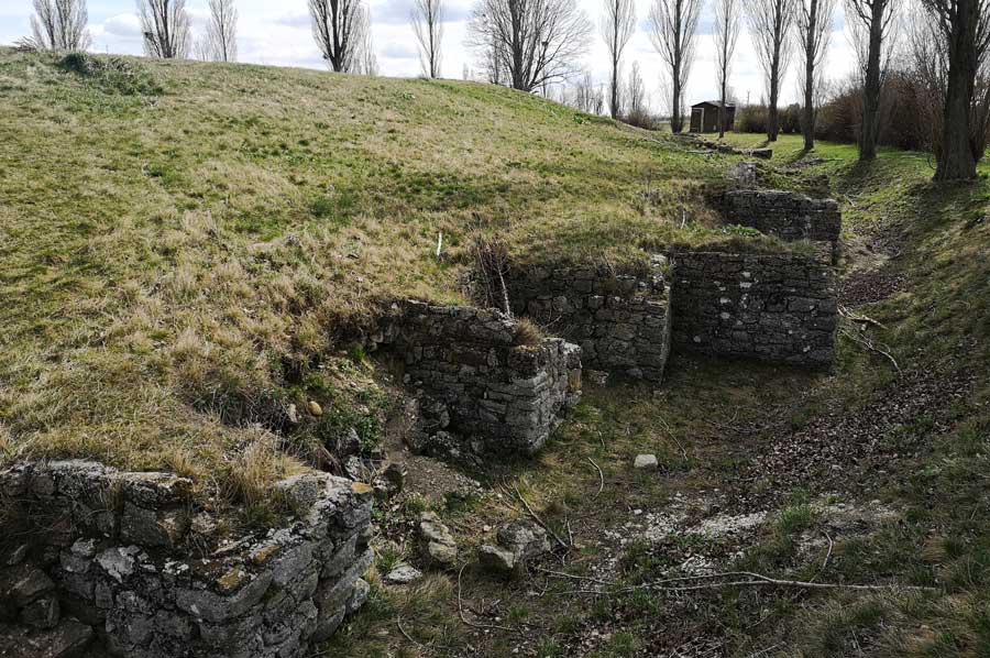 Just by the help of an inscription square found there the building could be identified as the long-sought amphitheatre of the civil city. Since there was another layer of rubble above the layer of humus that had accumulated since Roman times, it was assumed that it was badly damaged by stone robbery in the 18th century for the construction of the Traunschen dumping box and the wall of the zoo.