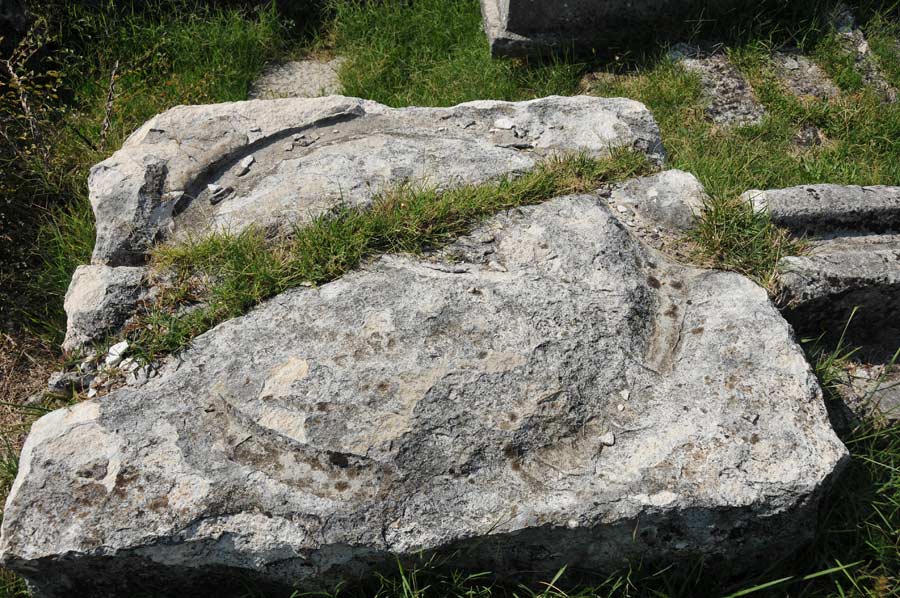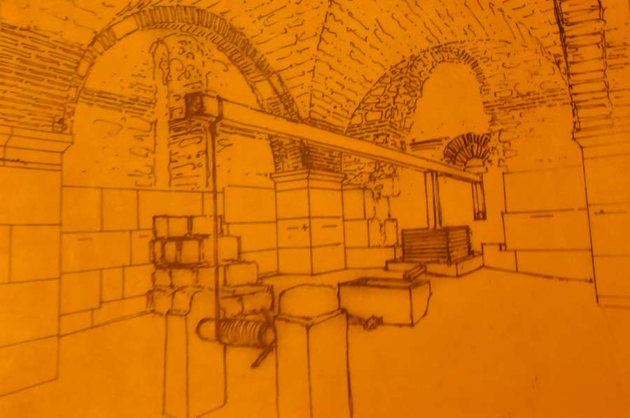 Apart from grinding grain, water power was also used in Roman antiquity to saw blocks of stone and marble. The mechanical sawing of marble was not possible with the usual rotational movement of water mills; What was required was a back-and-forth movement. Such a transmission mechanism was first detected in the sawmill of Hierapolis (late 3rd century AD). Similar power transmission mechanisms with a crank and connecting rod, although without a gear drive, are known from archaeological excavations of two stone sawmills from the 6th century AD in Gerasa (Jordan) and Ephesus (Turkey).