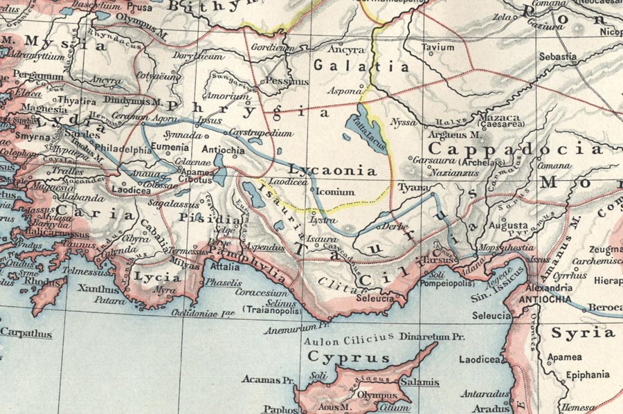 Referred to as Pisidia in Greek and Latin, the region bordered Lycaonia and Isauria to the east, Pamphylia and Lycia to the south, and Phrygia to the north and west.