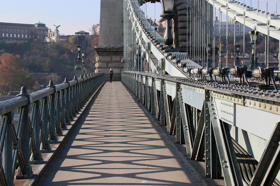 During the exploration of the Budavari Siklo cable railway at the castle mountain of Budapest we had noticed the mighty pillars of the bridge construction, which leads over the Danube. Similar to the Tower Bridge in London, the architecture of the pillar system suggested a construction period before the 20th century.