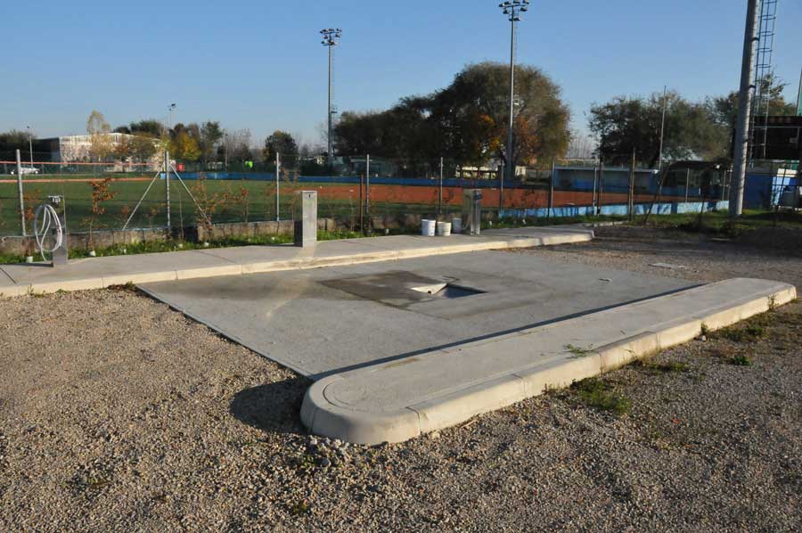 The result finally was a concept for the establishment of 8 camper pitches, which are distributed over 2 groups, which also ensure the power supply via two power stations. Technology used for this purpose is a distribution station, which contains fuses and sockets and corresponding machines that provide the electricity for a fee by the hour. This allows the user to determine at what time he wants to use the power connection, or for which period. Extremely practical in the operability and without personnel costs to wait safely. The same principle applied here in Staranzano for the supply of fresh drinking water. For a fee 100 liters of fresh water were offered, which were to be filled into our own storage tank. This machine also worked flawlessly, without requiring much technical understanding, short instructions in Italian, English, German and Slovenian. In short, the entire area was free of staff costs, easy to understand and well organized, in addition to video-monitored, so that one could confidently pursue one's own explorations.