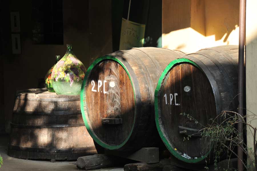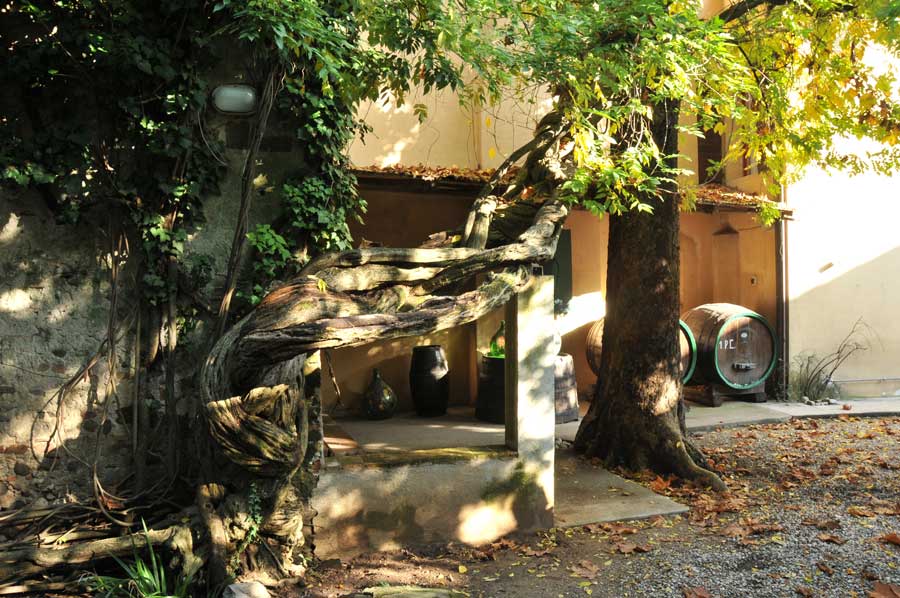 Unfortunately, some objects worth seeing were also locked here, holiday season in November also in Clauiano. In the end, it was Giorgio who approached one of the interesting-looking main houses in the center, into which the courtyard gate afforded a view. A little later we met Elisabetta Foffani, the owner, who invited us to a first tour of the farm in perfect German. Wine production was the main source of income for the Foffani farm, along with a few other options including renting out guest rooms. Run as a family business, from time to time a concert at the piano is offered by one of the sons, who lives in Rome. The occasion is often wine tastings that are held in a festive setting above the dining room. We too were able to get to know a sample of our own wines a little later.
