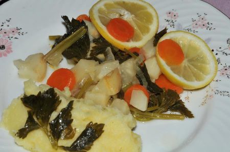 Cooking the celeries does not take a long time. 15 minutes may be sufficient, but still check the celeries and carrots with the help of a fork. When you are about the take the food from the furnace (last five minutes) disperse the circle shaped lemons on it.