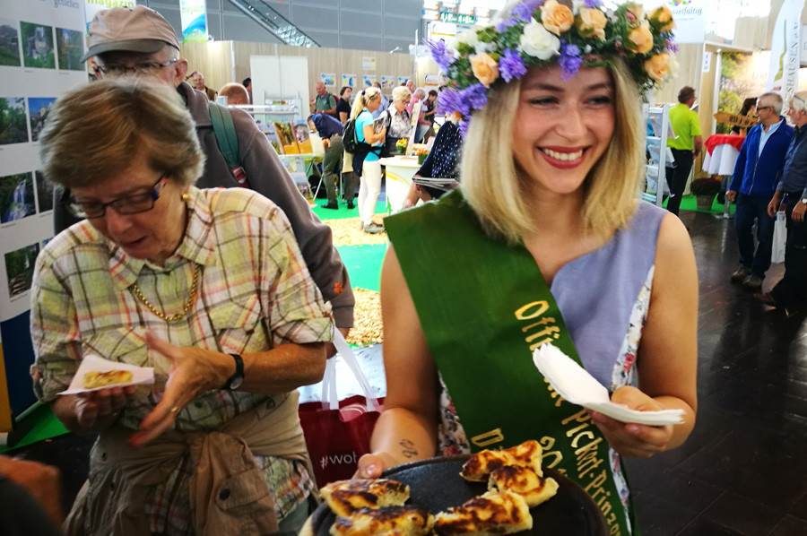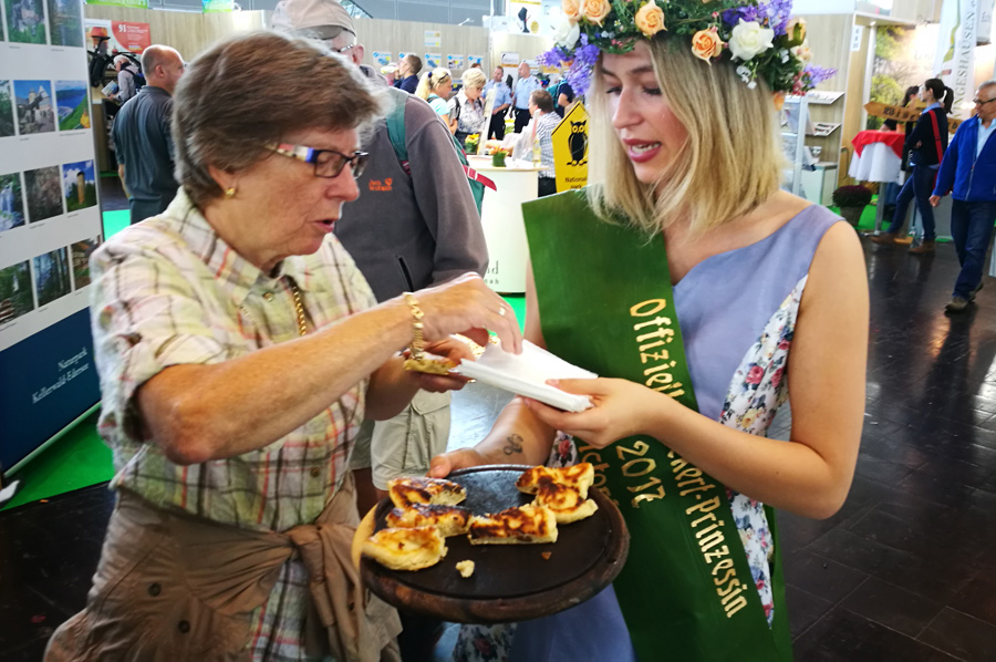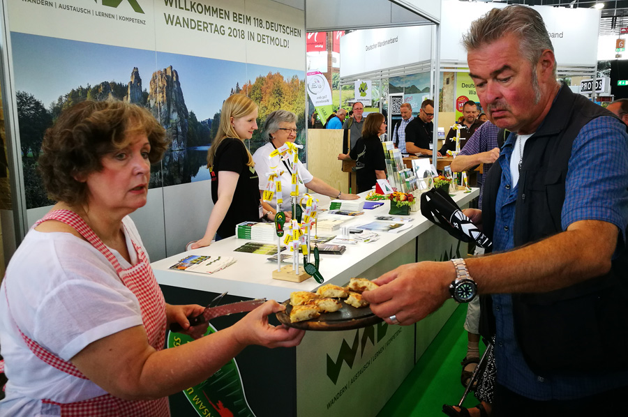 The stand from Detmold, which already invited to the hiking day 2018, was noticeable here. Remarkable also because the smell of freshly baked rose into the nose from the distance already. We followed the scent and were promptly addressed by a young lady in a typical local dress - Do you know Pickert? What we had to negate, since the word already was completely unknown to us.