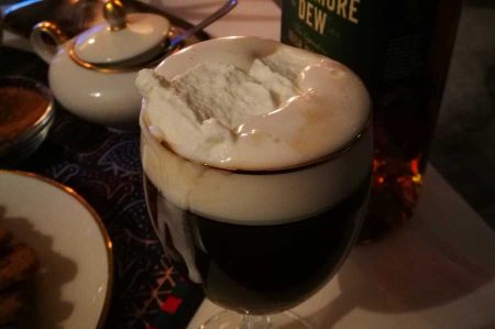 In Ireland called Caife Gaelach respectively Gaelic Coffee, Irish Coffee is basically a lightly sweetened coffee on Irish whiskey and on top of it a cap of lightly whipped but still liquid cream. So far so good - maybe it's not a real highlight yet. So what else is appearing?