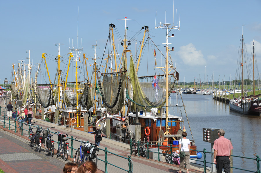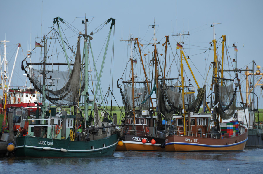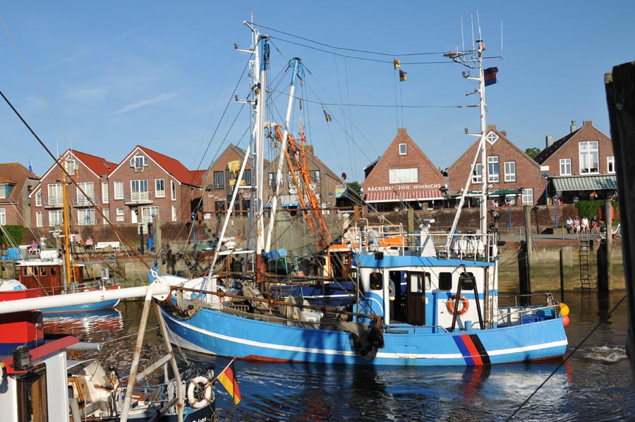 There they were now in the port of Neuharlingersiel on the quay, the shrimp boats. A very impressive picture opened up to us when we looked at the individual cutters, so colorful and beautiful in the setting sun. And ready to sail in time, because shrimp fishing is tide dependent, which means the shrimp fishermen get active when the tide rises. After our return from Spiekeroog, we were able to watch the first shrimp boats leaving the port of Neuharlingersiel.