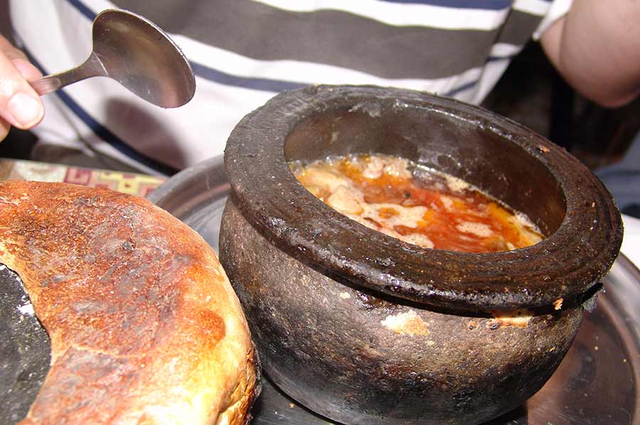 All that remains to say is that our steam-cooked roast tasted excellent in the evening. The almost fired clay bowl was very artfully opened on one side so that you could easily get to the meat and vegetables in a fine broth like in a bowl. Oh yes, freshly baked bread was served that had been baked in the neighbour's stone oven. After about 7 hours of cooking, the meat was really tender and the vegetables had given off some of their flavour to the meat and the broth. Delicious, what more can you say. Culture means diversity.