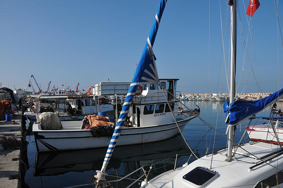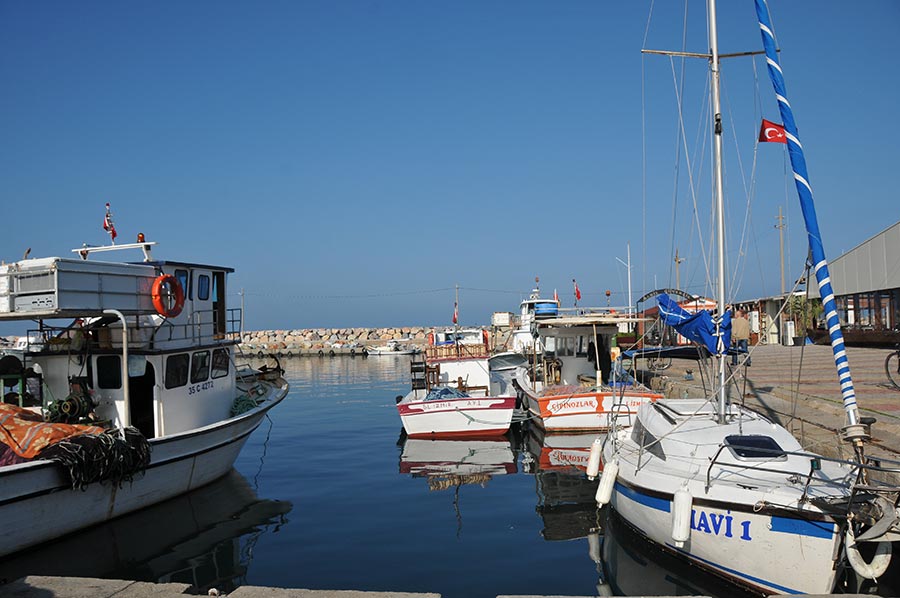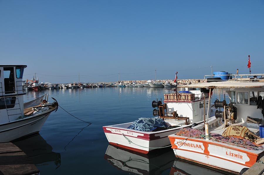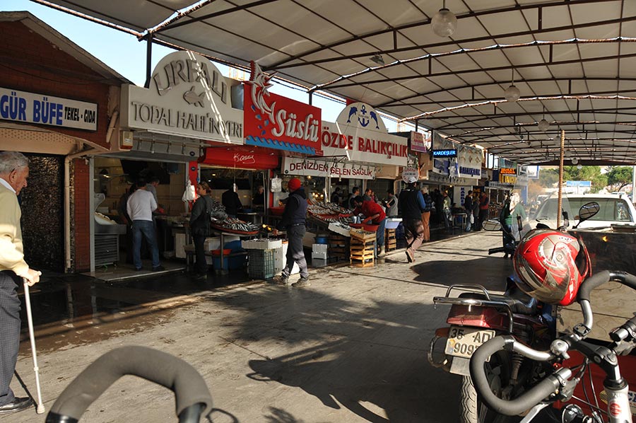 On the way we came across an interesting fish market that, in cooperation with local restaurants, offers a typical Turkish service that is also available elsewhere on the Turkish Aegean: At the fishmonger of your choice, you name the restaurant you have chosen, select the seafood you want from the market stall that suits your taste and tell the staff your restaurant of choice. The fish is delivered to the restaurant, cleaned there and gutted, filleted, grilled or prepared and served according to your choice of preparation. A service that guarantees everyone involved that the fresh fish you have chosen will actually be served.