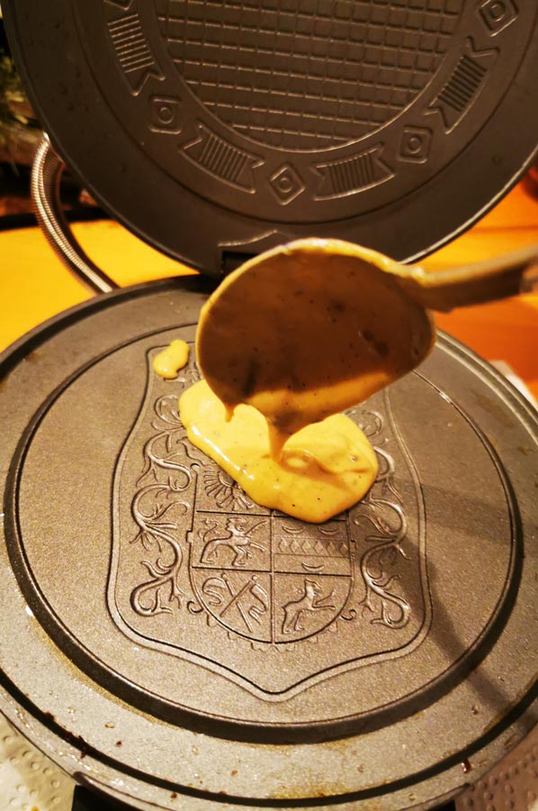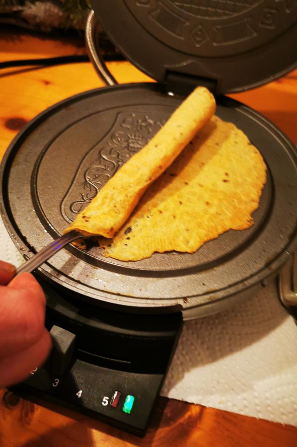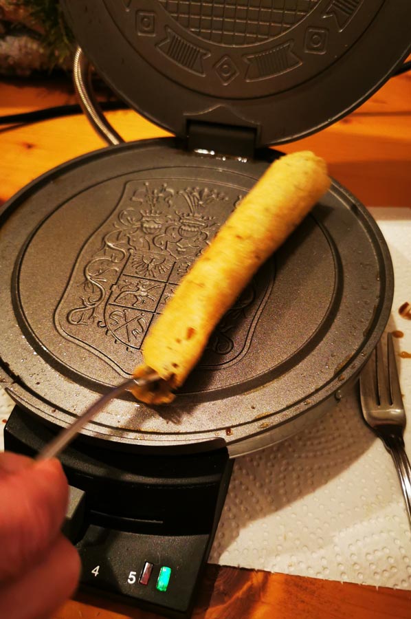 They are then enjoyed for the first time on New Year's Day with tea. These rolled cones, made from a special pancake batter, are baked in a special waffle iron and usually served on New Year's Day when neighbours and friends visit each other, or so the widespread custom goes.