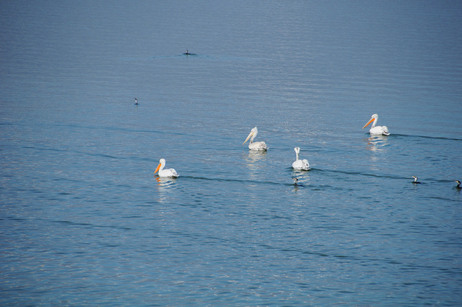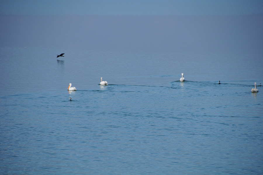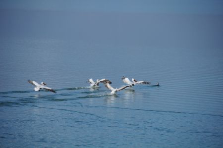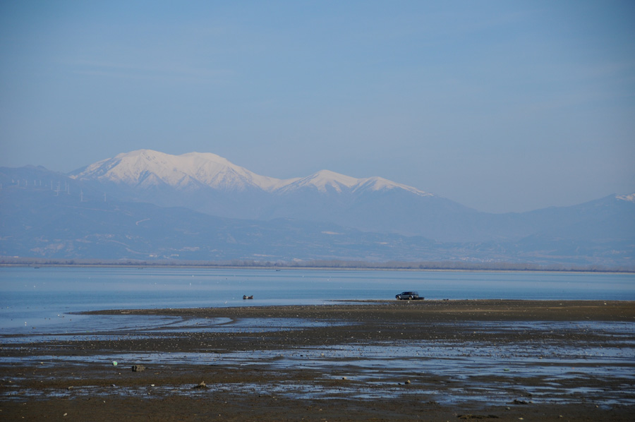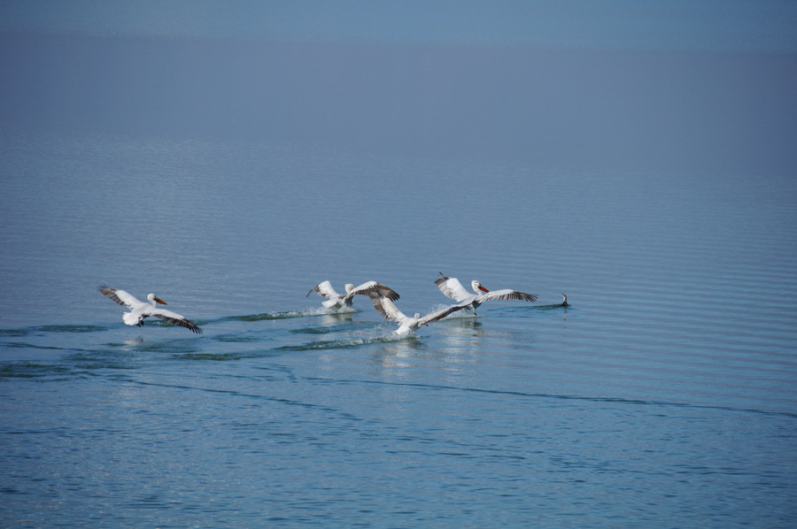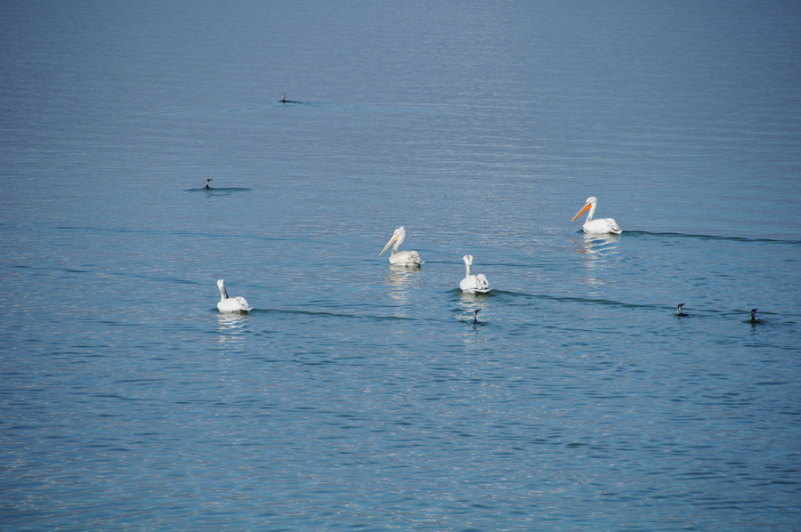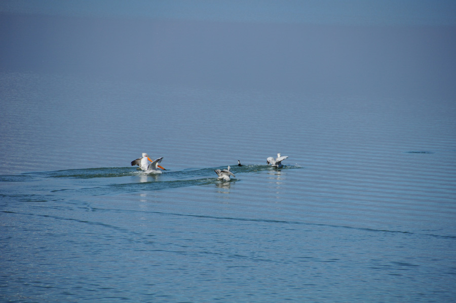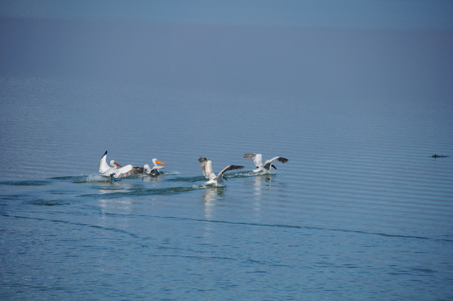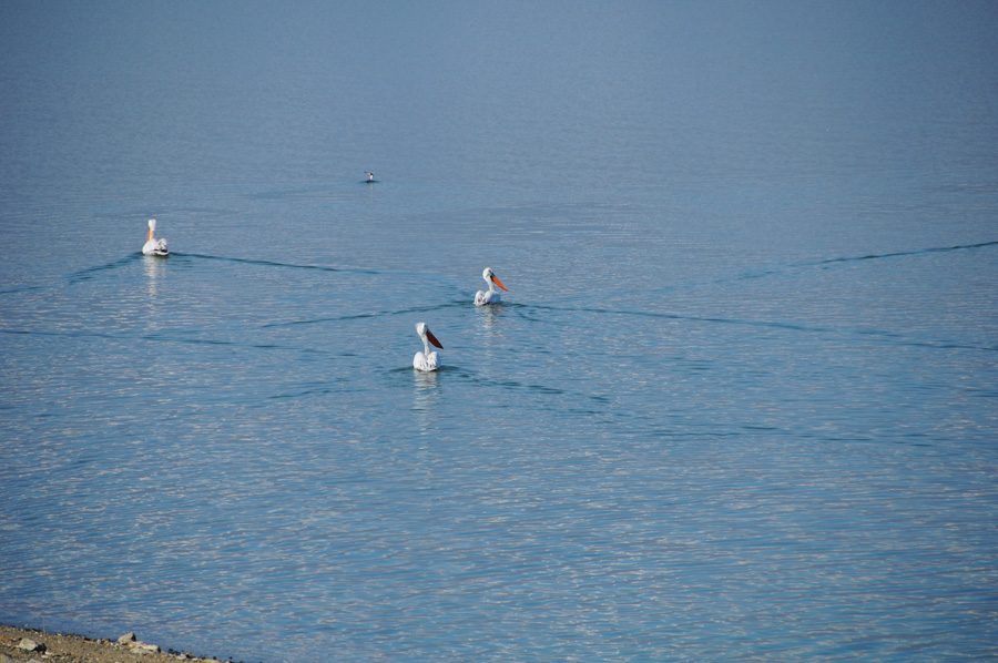 At Lake Vistonida we had already noticed the diversity of present water-birds, what we now deepened during the orbiting of Lake Kerkini. In addition to the large groups of the gray geese, the pelicans, fishing on the lake, were once again attracting us.