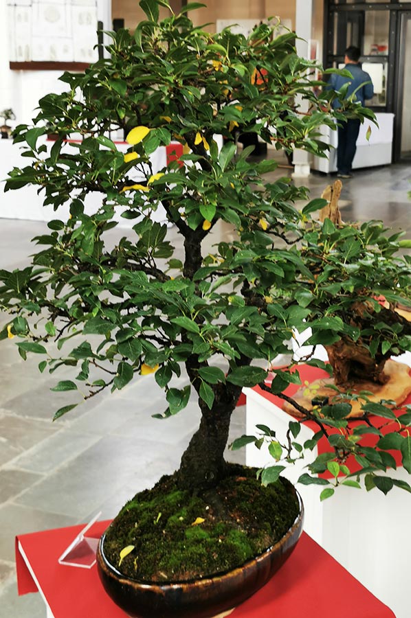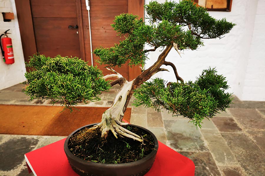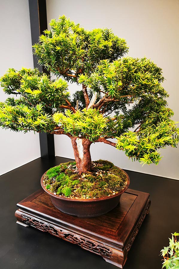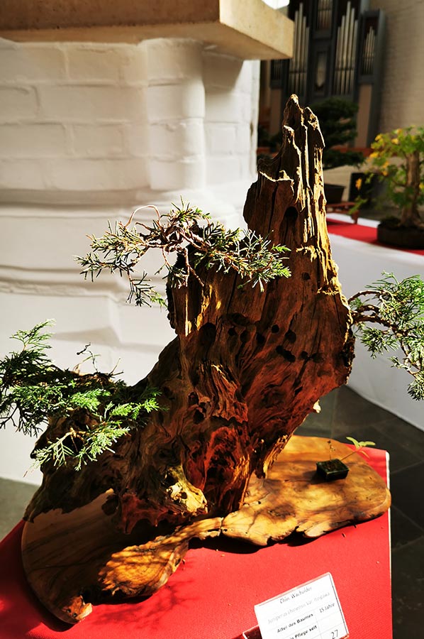 Be it the Japanese black pine in the somewhat capricious literary form, the Chinese juniper in the cascade form, whose trunk and shape seem to have been pressed to the ground by the harsh climate and long winter snow loads, or a gnarled pedunculate oak that presents itself very sublimely in a free, upright style, they are all always real crowd pullers.