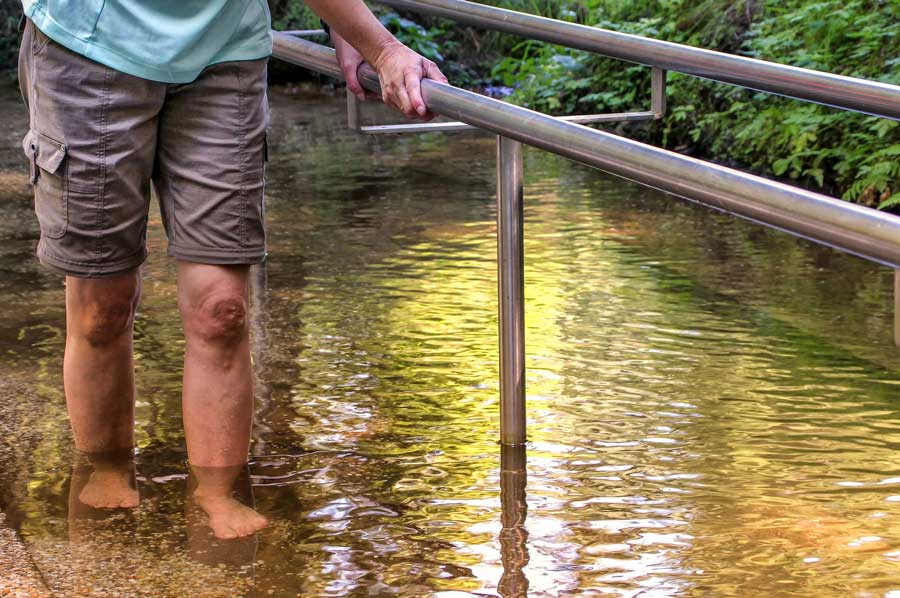 Hydrotherapy uses water. The best-known applications are Kneipp waterings and treading water.