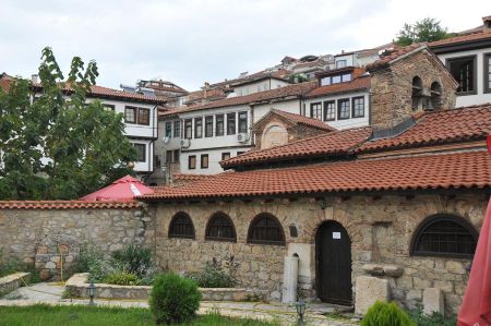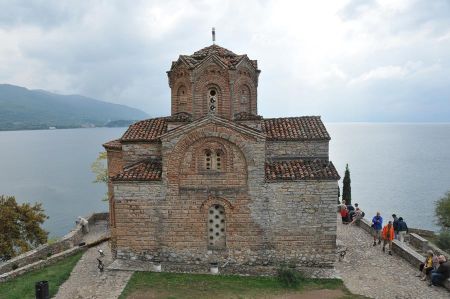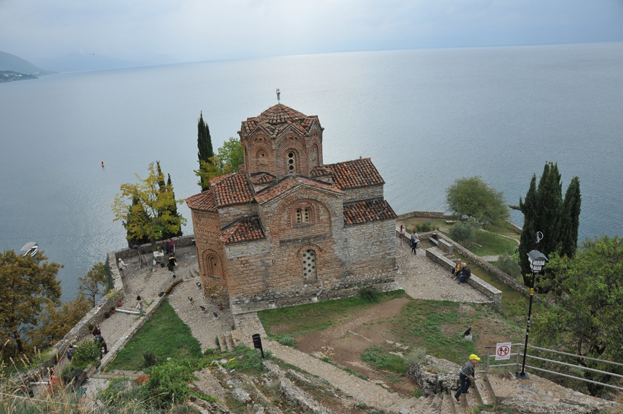 Then the gentle ascent to the castle hill, the first stop at a terrace gives us the great views of the beach area of Ohrid and later we arrive at the tiny chapel Sveti Jovan Kaneo. This chapel is considered to be a further magnet for tourists, which includes a huge number of church icons, paintings and murals.