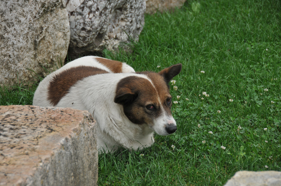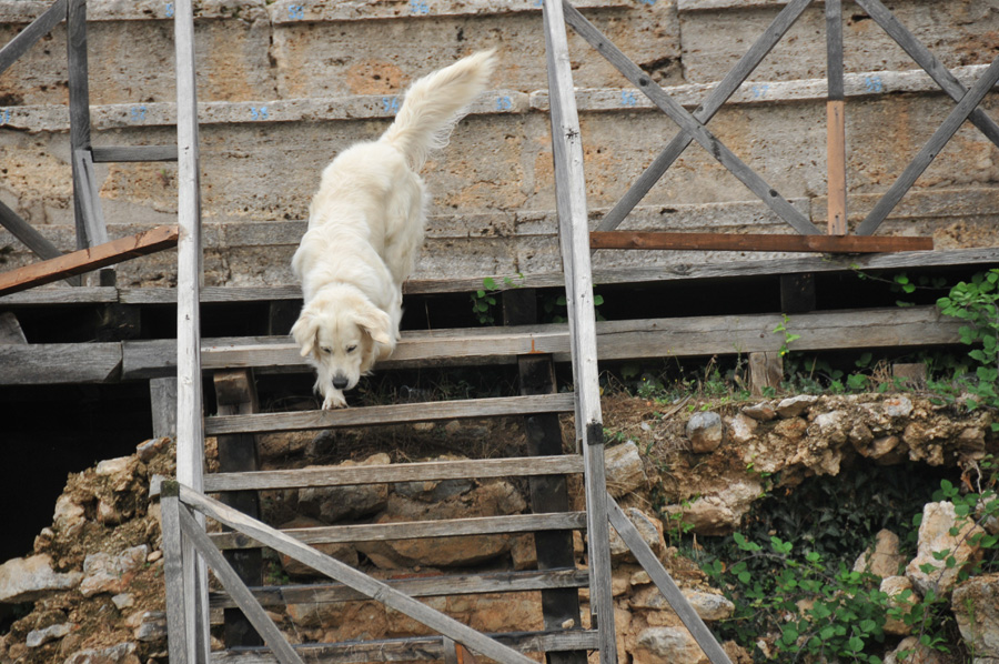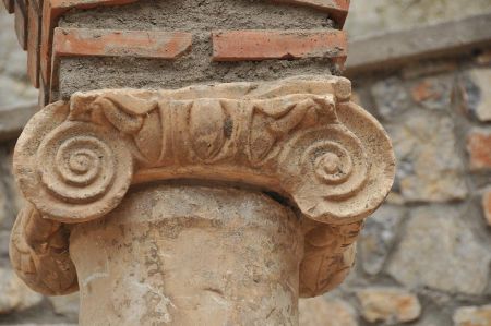 Partly impressive stone carvings from antiquity fascinated in accuracy of joints without any mortar. Right next to it and not unearthed, we noticed some capitals which are laying unprotected in the loose soil of the escarpment. Hard to believe, but ignored for years.