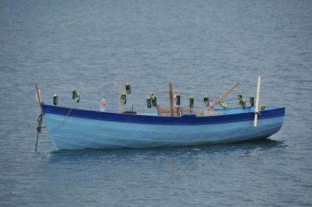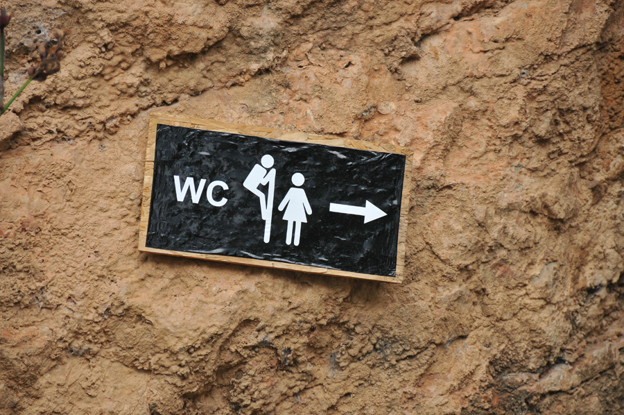 Various curiosities fall on us, the small but "elaborately" decked rowing boat, as well as the symbol of the toilets, which, almost hidden shows the way to a rock niche.