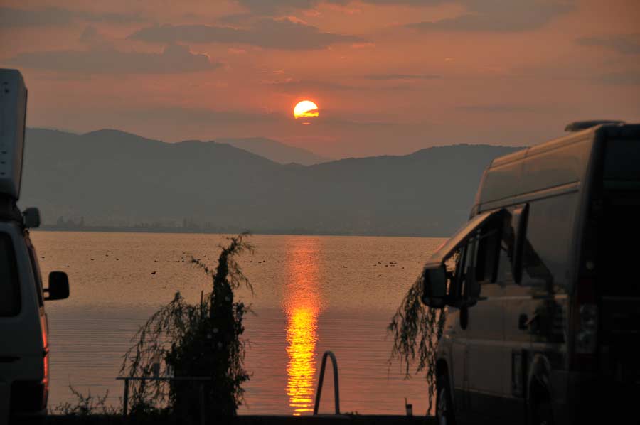 Maybe you like the pictures of the early morning, so that you even want to visit the Ohrid Lake once. In Ohrid itself, there is an international airport, the accessibility by Camper is easy possible from Croatia, Montenegro and Albania, without any problems. If your interest should be aroused, please visit the Camper-Route.de to see some of the places to have a break.