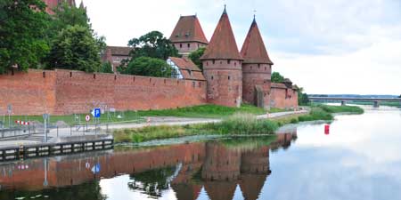 Even from a distance, the outlines of the towers and buildings of the Marienburg on the Nogat, an estuary of the Vistula, leave a first imposing impression of their size, thickness and importance, which must have once emanated from it.