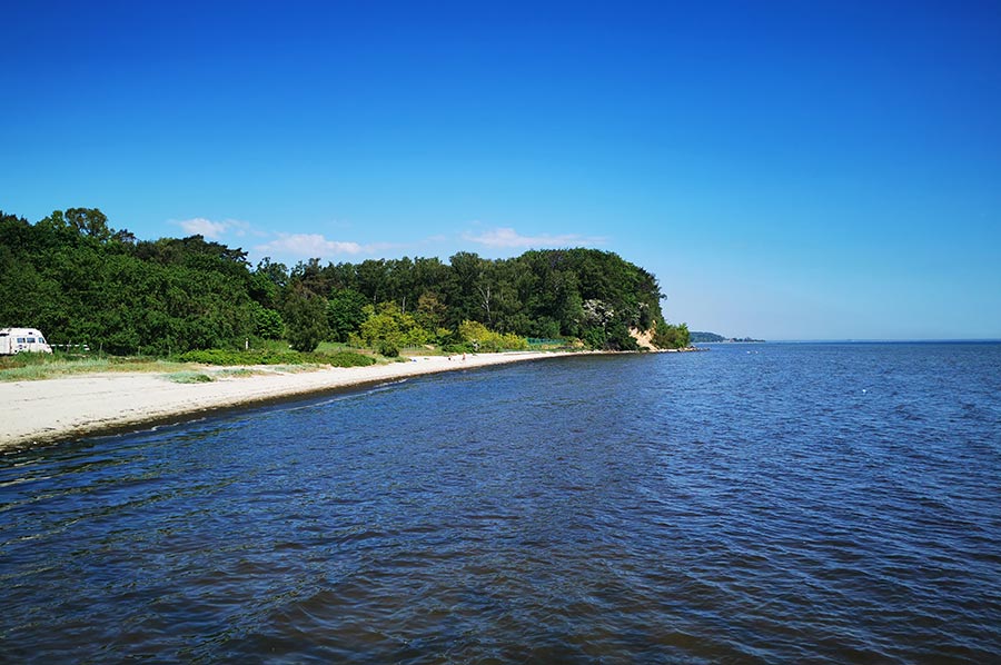 It wasn't just the street noise that made us look for alternative accommodation - we ultimately came across the small town of Osłonino, about six kilometres southeast of the city of Puck and about 17 kilometres north of Gdynia, right on the Gdańsk river Located in a bay that offers very shallow, sandy beaches and therefore very shallow water.