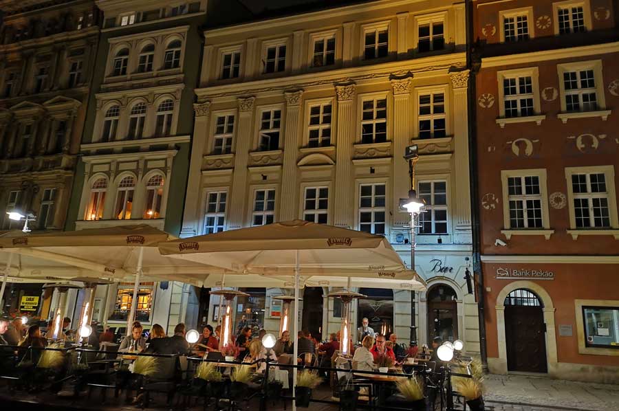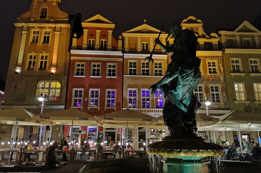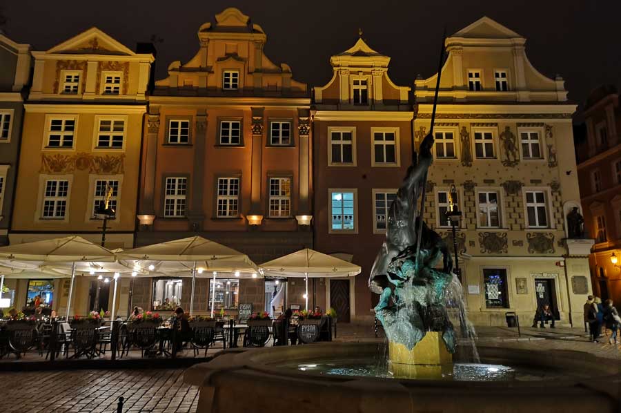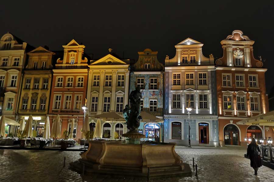At the end of the Second World War, the old town of Poznan was badly damaged. The patrician houses around the square, mostly from the Baroque era, were also destroyed and were rebuilt in their historical form after 1945, or at least their facades.