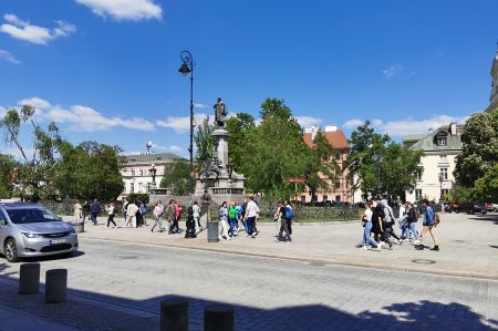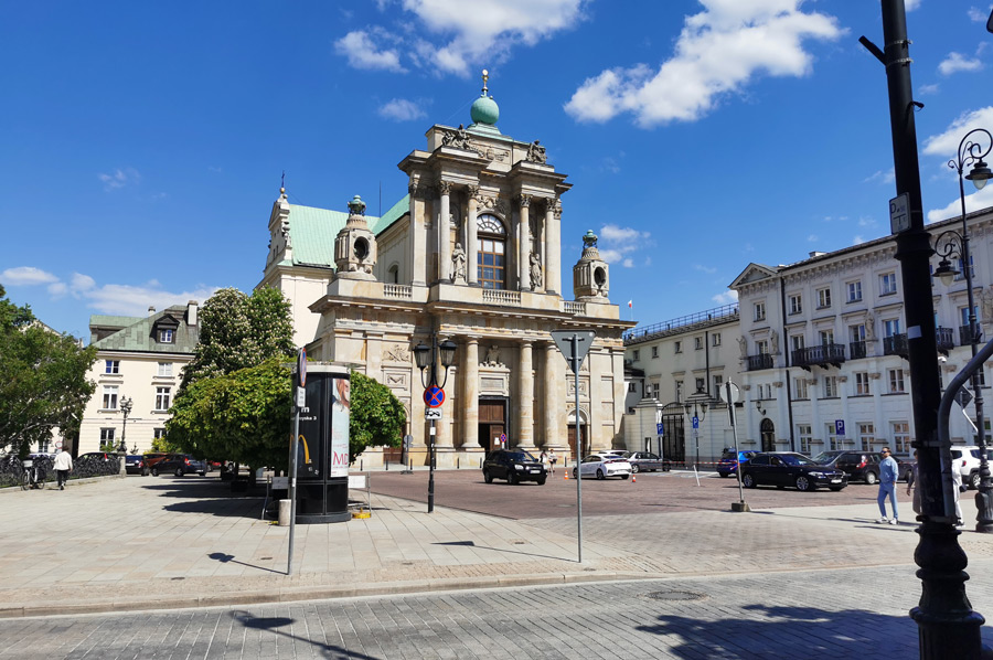 Once there, we also wanted to see the center of Warsaw a little closer, because our last visit had only allowed us time for a typical Polish meal at the Warsaw Royal Castle or in a small restaurant with Polish specialties nearby, which means only a few It was possible to take photos of the castle and Sigismund's Column, which has been the dominant feature of the important Castle Square since 1644. The so-called Kraków Gate and part of the city wall had already been demolished in 1818. However, the street beginning at the Kraków Gate – Krakowskie Przedmieście (Polish: Krakowskie Przedmieście) – kept its name.