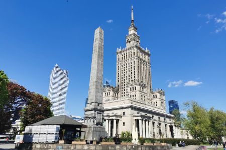 Initially unpopular to hated as a symbol of totalitarian oppression and mocked by the people of Warsaw, saying that the most beautiful view of Warsaw is from the Palace of Culture, because you don’t have to see it from there and history is popular with many residents and tourists and is one of Warsaw's landmarks. Today the Kulturpalast houses cinemas, four theaters and three museums, an indoor swimming pool and a photography college in its 3,288 rooms; In addition, there are often fashion shows, trade fairs or concerts in the adjacent congress hall. On the 30th floor there is also a viewing platform and a panorama restaurant at a height of 114 metres.