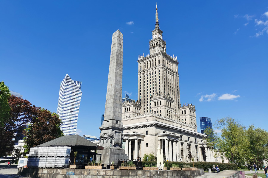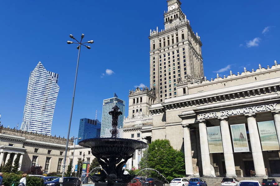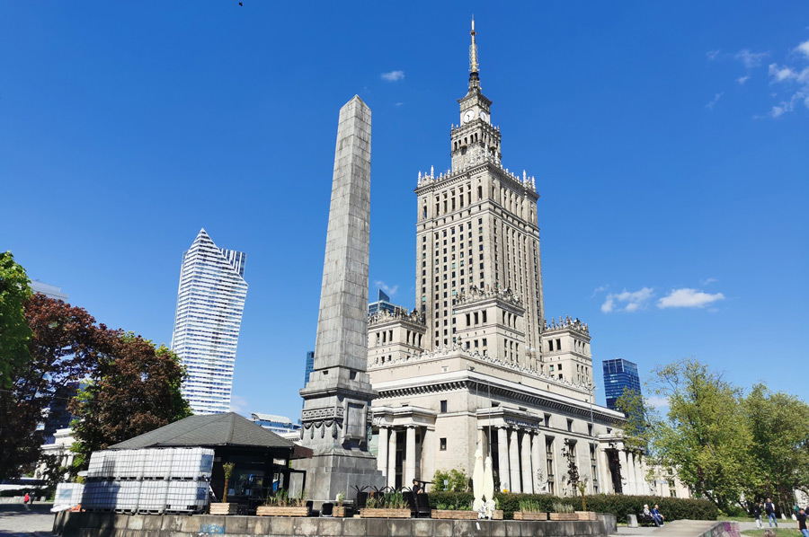 But let's start our city tour at the selected exit of the M1 in the center at the subway station Centrum, directly opposite the Palace of Culture "Pałac Kultury i Nauki".