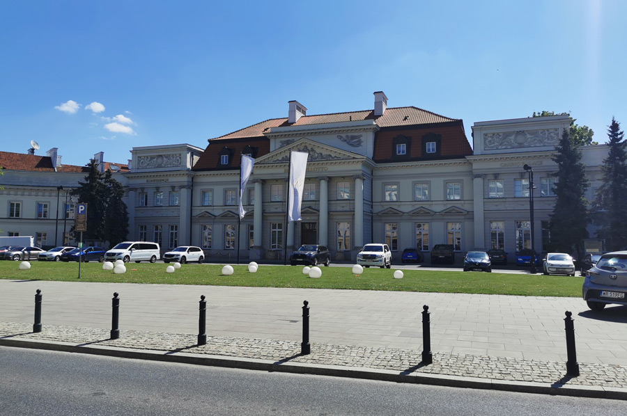 We continued on our way to the Königsweg, which was only one block away. The Royal Route or Royal Tract, Trakt Królewski in Polish, actually begins at Warsaw's Royal Castle, heads south and is one of the longest representative streets in the world. Coming from the Saxon Palace, we came across him just before the Presidential Palace. Originally, it referred to the approximately 4 km long route to the Royal Łazienki Park, later to the Belvedere Palace. Recently, the continuation to the Wilanów Palace, 10 kilometers away, has also been planned by King Jan III. Sobieski included. The historic royal wing consists of several representative streets, the Krakowskie Przedmieście, the Nowy Świat and the Aleje Ujazdowskie (from north to south). It is connected to Wilanów via the later routed streets Ulica Belwederska, Ulica Jana III Sobieskiego and Aleja Wilanowska.