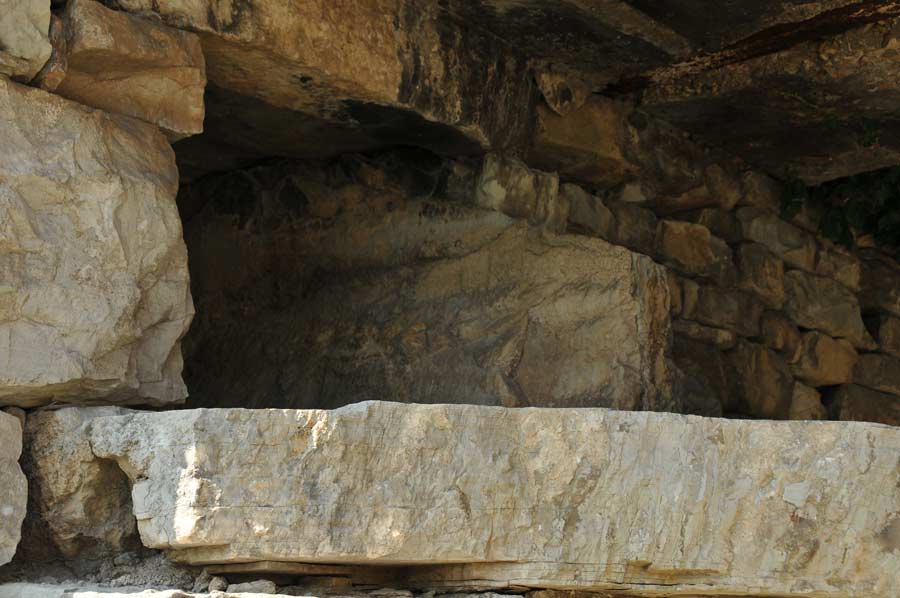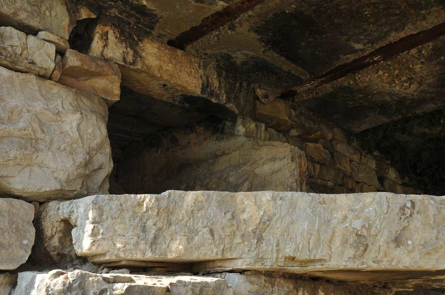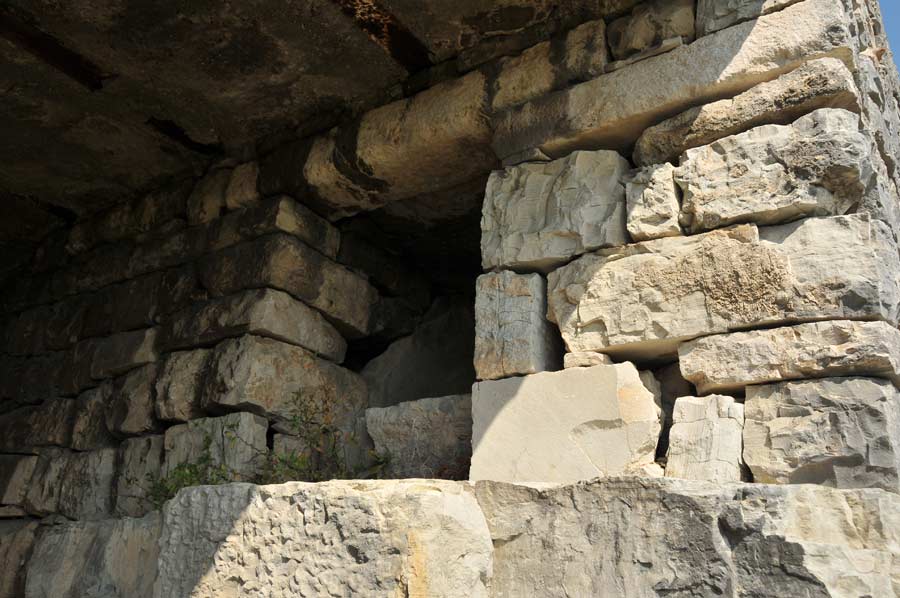It was built of large, regularly-hewn blocks of different origins in form of walls coverings and the unused spaces in between were filled with unused rock material to obtain sustainability and security. Two octagonal towers once formed the guard towers on the outer sides of the gate, which had three entrances. The largest entrance was mainly used for the transport of goods while the two smaller side entrances determined for pedestrians. Even today one can see the deep ruts of the wheels of the carts in the stone pavement. Yes even the later on modified track widths are still clearly visible.