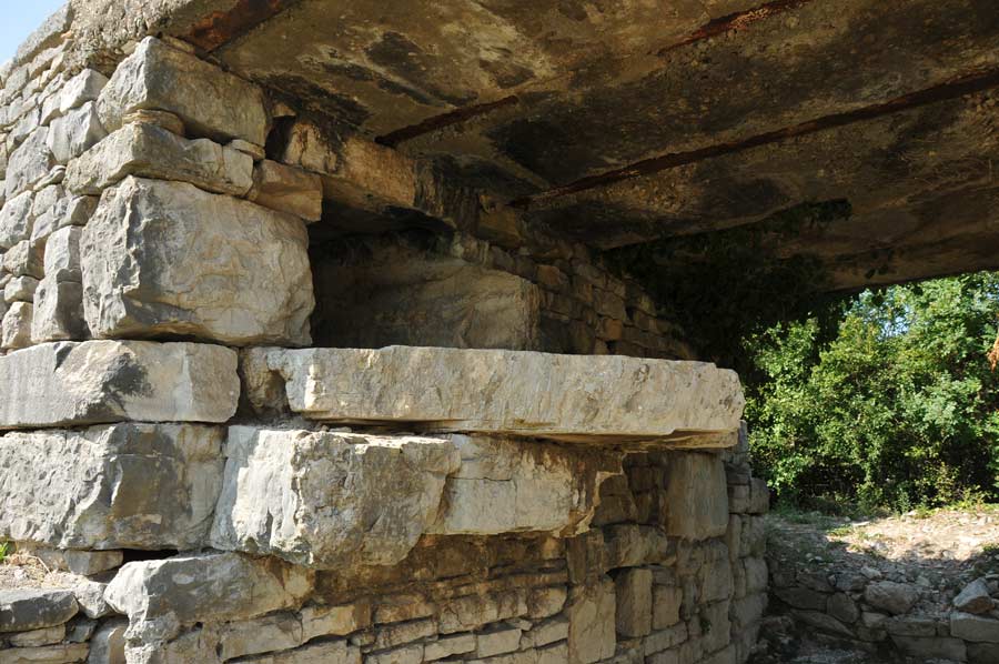 Next to the gate a larger part of the original pavement of the Roman road Decumanus Maximus can be seen towards Roman bridge over the river Salon before it is getting lost in the grounds.