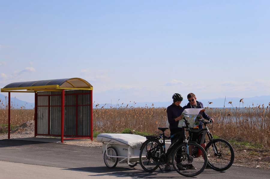 Thus, the extended test tour with mountain bike and Turtl, which should take place right after the marketing event at Lake Ohrid during our further activities in Macedonia, Greece and Albania, moved a bit forwards, since both Turtl vehicles are still needed for exhibition purposes in Austria. The weather also makes this rescheduling seem very useful, cause there is still too much snow on the local mountains. We will take over our Turtl a bit later in Greece at Zampetas and start our tours from there. But more on that later.