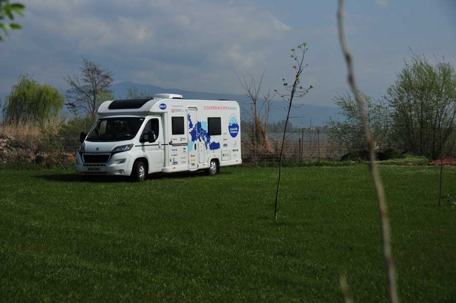For sure, we were interested about the activities, what was the idea of this happening, when one of the photographers was ready for some explanation, which should be such next big surprise: the camera team was expecting some mobile homes and trailer caravans which are altogether on a marketing trip across Europe for the development of British camper tourism including the Balkans as destination: 21 countries in 21 days # bristanbul! Quite comparable to our project ideas. Next to the team of photographers, there will be a motor home and two cars with caravan trailers, which will arrive little later, as he explained. They all started in Bristol / Great Britain, were passing France, Italy, Croatia, Montenegro and Albania, to arrive at Lake Ohrid in Macedonia as an intermediate destination to continue until final destination which is Istanbul later on.