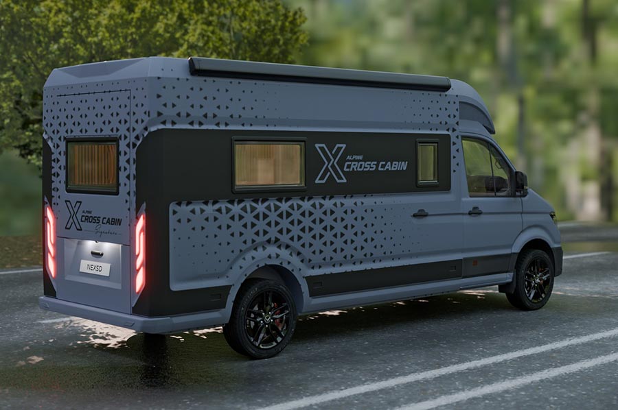 Alpine Cross Cabin Signature: Sales launch of the pioneering New Work Van at CMT Stuttgart 2024. Alpine presents the new high-end version of the extremely popular “Mobile Office” vehicle, which is designed for two people and is based on the innovative NEXSD ONE.
