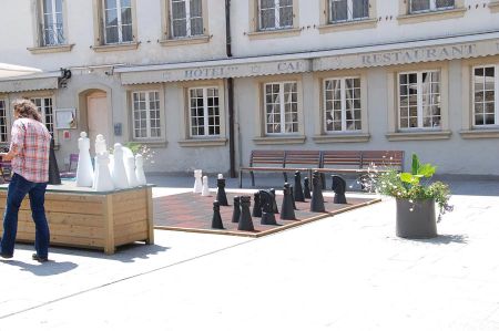 The Old Town with its almost rectangular floor plan has an extension of just 300 × 200 m and is clearly reminiscent of the layout of Roman settlements, no wonder actually, because Avenches / Aventicum once was the capital of the Roman province of Helvetia. The old main road from Payerne to Murten today forms the central longitudinal axis.