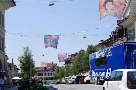 A monument of the Swiss aviation pioneer stands in the center of Avenches.