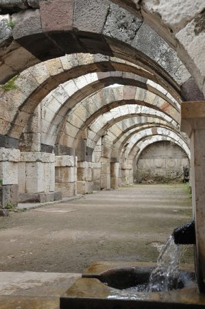 Not far south of the Fevzi Paşa Bulvari are in the Namazgâh district, about 150 m east of the Eşref Paşa Caddesi, the excavations of the originally from Greek times, after a devastating earthquake in the 2nd century BC. Under Emperor Marcus Aurelius, carefully rebuilt Agorá, where political meetings were held and purchases were made in ancient times. On the west side of the green open space there are still 13 columns with beautiful capitals and on the north side there is a 160 m long three-aisled basilica, which rests on a pillar-supported vault.