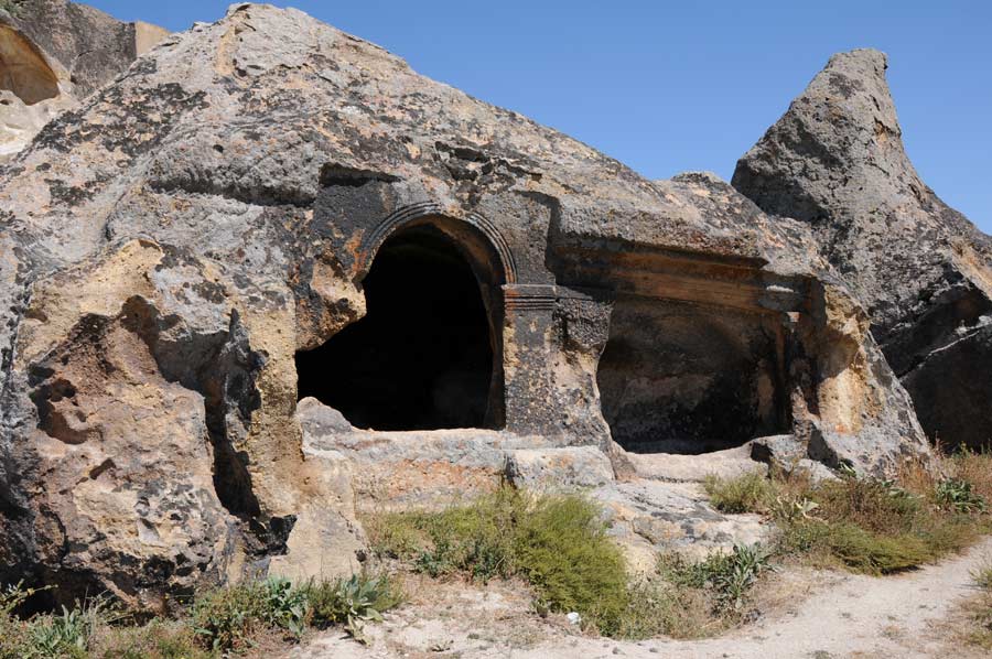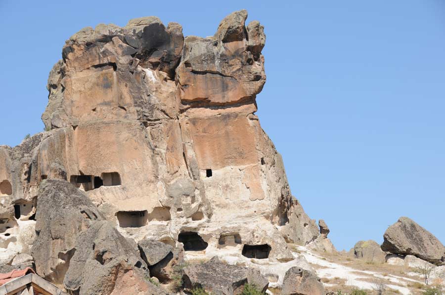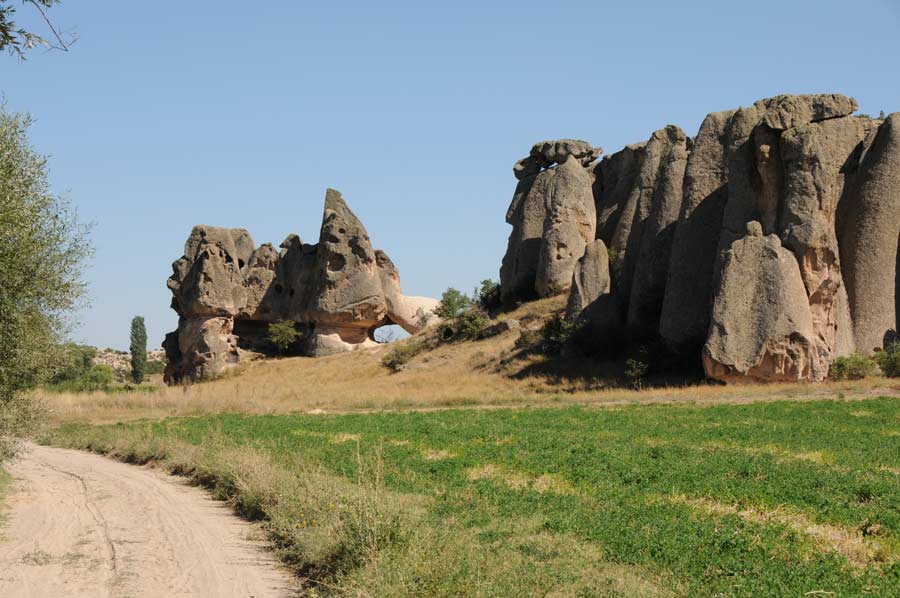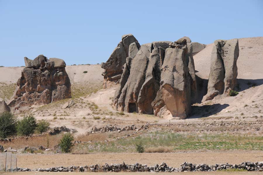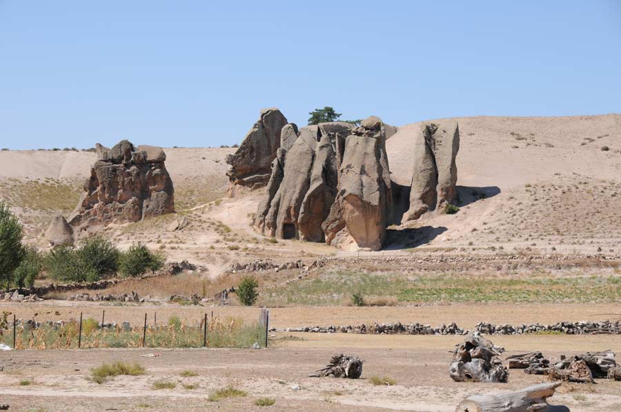 Hardly any signage and little firm road surfaces are probably two of the reasons why the Phrygian Valley has so far received so little attention from the tourist side. We ask the rural population, partly on well-worn sand tracks, to find some of the relics at all. We already decide to bring a navigation device with us when we visit the Phrygian Valley again, otherwise we would hardly be able to go to the points again. We encounter settlements hewn into the rock, which were inhabited until the Byzantine period. In Isehisar there are pointed rock formations (Karakaya and Kirkiler) and rock tombs from the Byzantine period. In addition, monasteries, churches and houses from the early days of Christianity. Near Ayazini lies the ancient city of Metropolis and other rock churches from the Roman-Byzantine period, as well as the ruins of Avdalaz Castle.