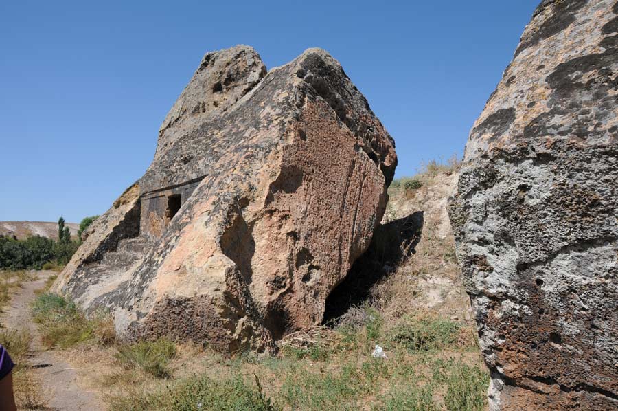 A little further along our circular path we come across rock tombs from Phrygian and Hittite times. Here it is primarily the towns of Aslantas and Yilantas that attract our special attention with their Phrygian rock chamber tombs and lion depictions. At Aslankaya we find a Phrygian monument to Cybele, the pre-eminent deity of the Phrygians, whose most important cultural center was in Pessinus (about 130 kilometers west of Ankara with the Cybele sanctuary). Like many other figures of gods, Cybele was taken over by the Romans. When the symbol of the goddess reached Rome via Pergamon with the delivery of the black meteorite, the cult of Cybele grew stronger and stronger until it achieved the status of "Magna Mater". Some mystics today even say that the myth of Adonis is based on Phrygian origins. The Phrygian cult facade of Malta is also worth seeing.